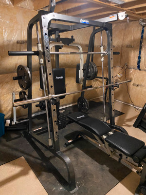 Nautilus Smith Machine with Pec Deck pulldown and seated row. Universal machine with preacher bench attachment 175 weight stack Bench Press attachment Leg Press attachment Close grip triangle handle Pec Deck Leg Extension Leg Flexion Solid construction and in good shape If interested text 1-306-280-7196 or contact via Kijiji messages. The machines dimensions are 48- x.